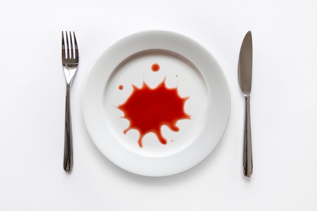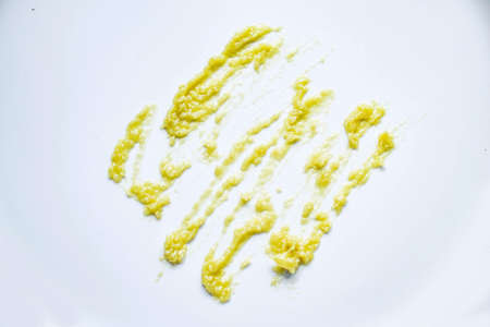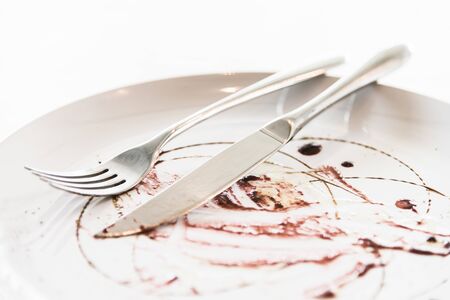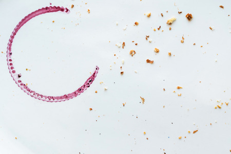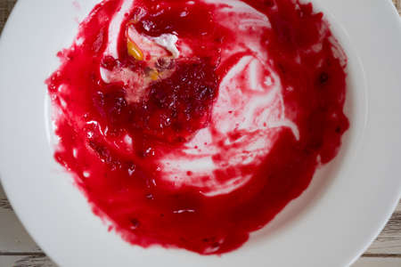 Stained with strawberry jam on white dish. Delicious food and dessert abstract background.