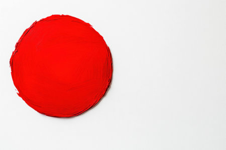 Bright red paint circle on a white background, representing creativity and boldness, ideal for artistic projects and modern designs