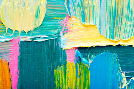 close up of colorful acrylic paint strokes on canvas background