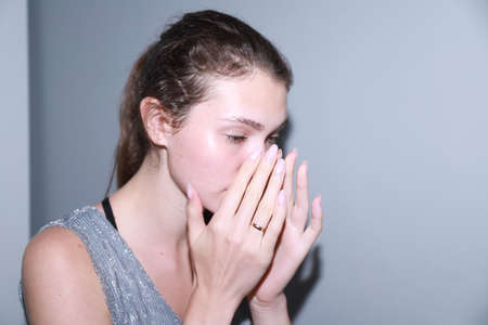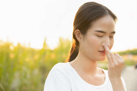 Female with sinus and suffer from sinusitis,Healthy and nasal,Close up