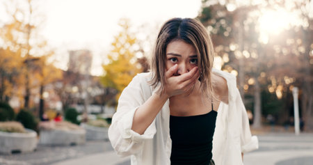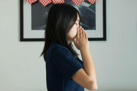Sick asian woman suffer from chronic cough pulmonary tuberculosis