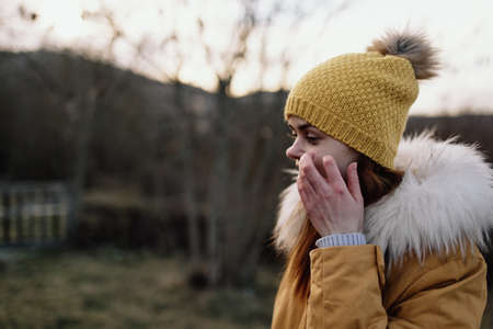 woman outdoors in jacket walk autumn fresh air