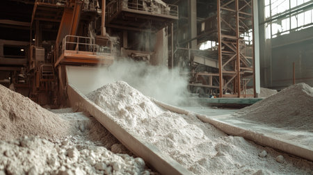 Kaolin clay being processed in a factory with space on the side for copy