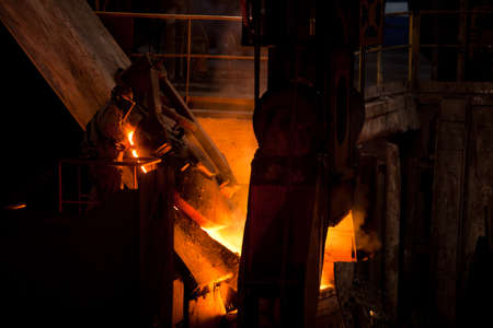 Foundry people heat liquid industrial welder factory steel metallurgy furnace metal iron