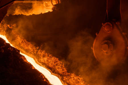 Blast furnace, cast iron production. Metal poured out of the metallurgical furnace