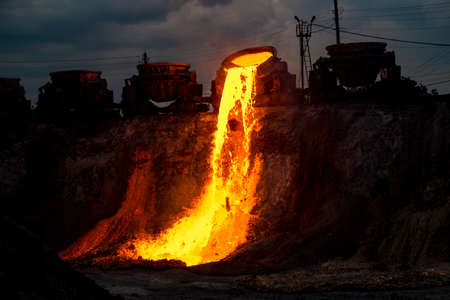 Domestic slag discharge at the iron foundry, industrial landscape