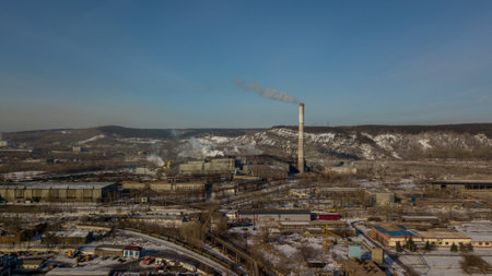 panoramic view of the coal power plant in winter, Russia