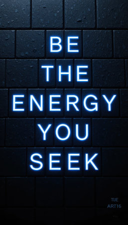 This captivating image features a glowing neon sign that reads Be the energy you seek, set against a dark backdrop. Perfect for inspiration or motivation.