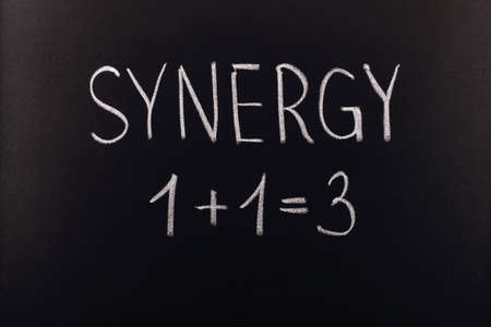 Synergy and connection of business with text on laptop.partnerships or cooperation to success.no people