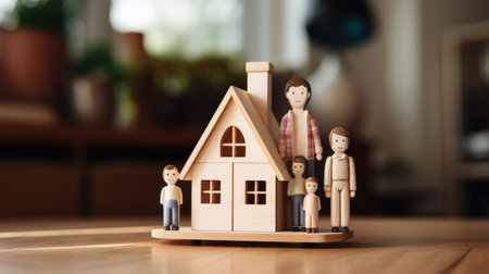 wooden little men with new house model
