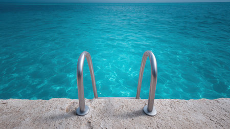 ladder leading into crystal clear spa water, created with generative ai