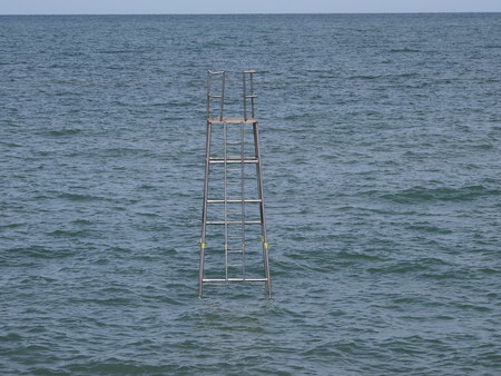 ladder into the sea sky mirroring on water