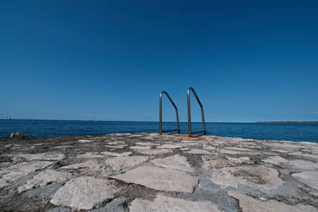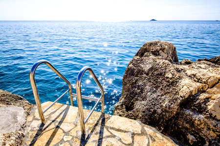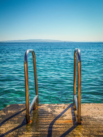 Metallic ladder on the beach, Solta, Croatia. Summer vacation.