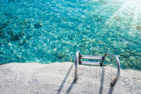 Ladder leading into the refreshing crystal water of a sea