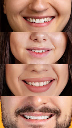 The Collage of Smiling Young People, Lips and Teeth Close Up