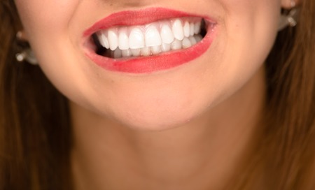 Closeup of woman's mouth with white teeth. Dentistry concept.