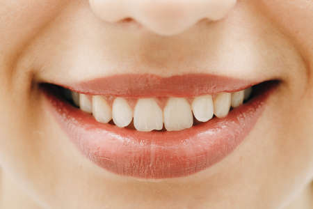 Closeup of smiling woman's teeth. Close-up of beautiful female smile.