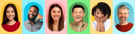 Diverse happy people smiling portraits on vibrant colorful backgrounds showing joy positivity inclusion happiness celebration multicultural community diversity concept.