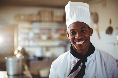 Portrait of a smiling chef standing in the kitchen of a restaurant