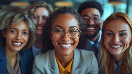 Portrait of smiling different business people. Generative AI