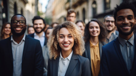 Diverse Group of Professionals Posing in a Modern Business Setting at Daytime Generative AI