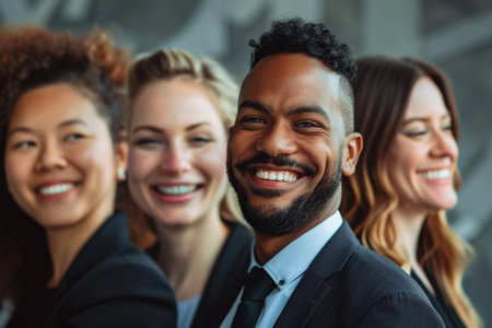 Portrait of smiling different business people. Generative AI
