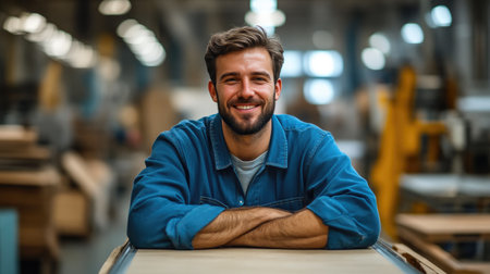 Furniture Assembly Line Worker Smiling in Factory