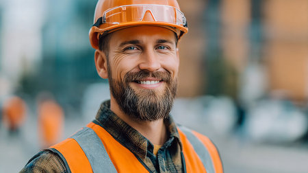 Joyful construction worker enjoys his day at work showing a spirit of teamwork and commitment.