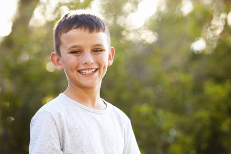 Portrait of a child boy outdoors on a warm sunny summer day.