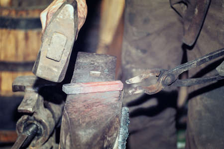The picture of the blacksmith is working inside the workshop of metalworking that need to use experience, strength and understanding in forging iron, metal, and steel to make good metalwork. AIG43.