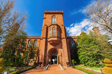 WASHINGTON DC, USA - SEPTEMBER 4, 2018: Victorian facade of the Smithsonian Castle, Arts & Industries Building, located on National Mall.