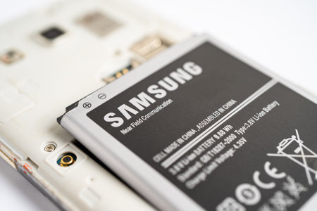 BANGKOK,THAILAND.JUNE 5,2019: Close up battery for Smartphone SAMSUNG.