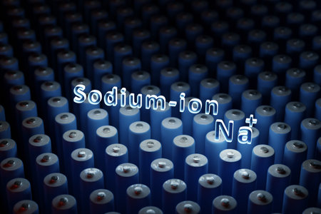 Sodium-ion batteries in a dark light spin around - 3D render - shallow focus