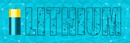 Illustration of cylinder battery. Lithium text textured by lines and dots pattern