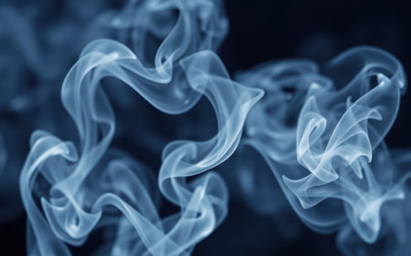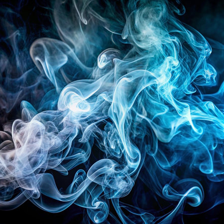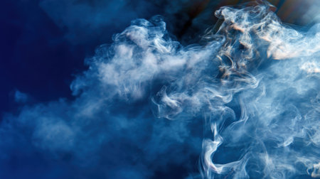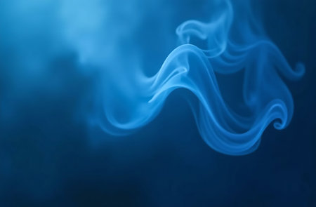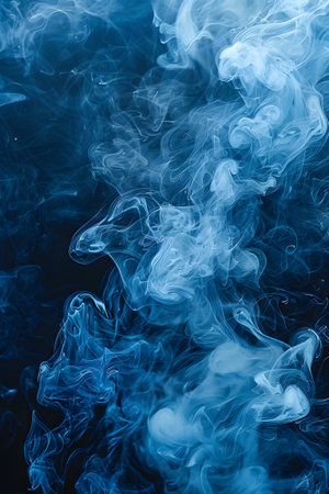 Wispy blue smoke swirling dynamically against a dark background creating an ethereal atmosphere