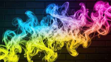 Colorful smoke of incense stick on a brick wall background.