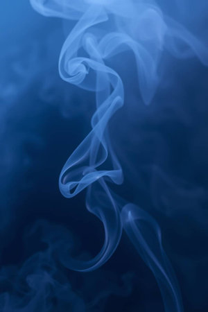 Flowing blue smoke creates a calming and serene atmosphere