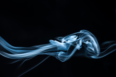 Abstract swirling blue and white smoke on black background. (3)