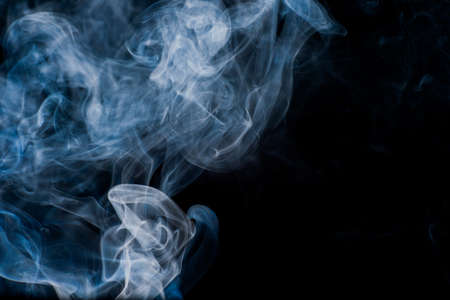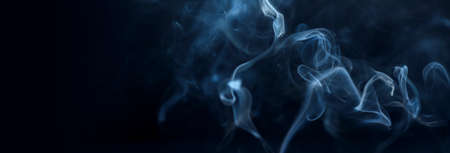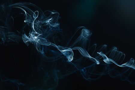 blue smoke on black background with abstract blur motion wave swirl . Wisp of Smoke. Cigarette smoke waves and clouds texture