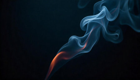 Abstract blue smoke with orange glow against dark background