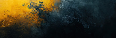 This artwork showcases a mesmerizing blend of dark pastel tones in yellow and black, where fluid patterns intertwine, creating a sense of depth and movement. The composition features swirling textures that evoke a dynamic atmosphere, drawing the viewer's eye across the canvas.
