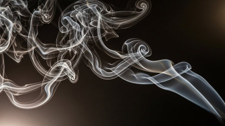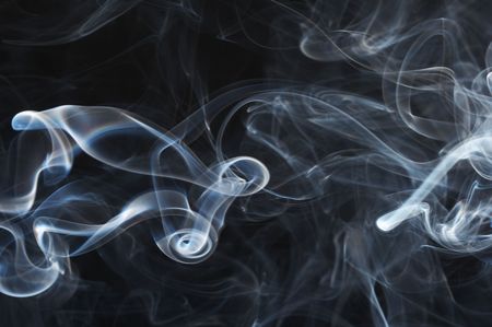 Wisps of smoke forming intricate patterns in mid-air on a dark background, with soft light accentuating the delicate swirls.