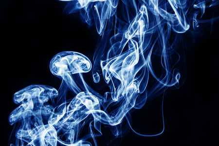 Blue smoke on black background.