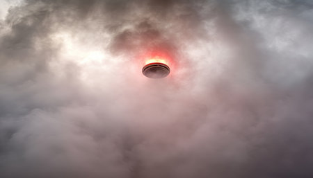 A striking image of a red emergency light on a ceiling, surrounded by smoke, creating a dramatic atmosphere. Ideal for safety and security themes in various contexts.