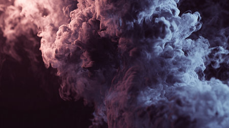 Color smoke. Vapor cloud. Esoteric energy. Neon pink blue glowing gas mist mix texture on dark black copy space abstract background.