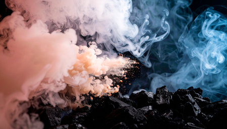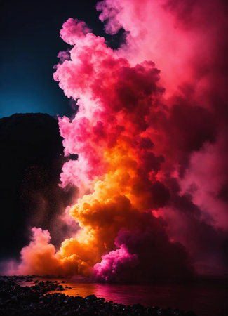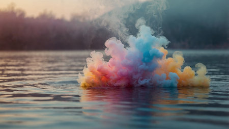 AI Generated. Amidst a sea of colors touches of soft pastel hues add a delicate and graceful touch to the smoke reflections on the water