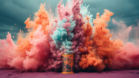 Colorful smoke bomb explosion creates dynamic and vibrant burst in the sky