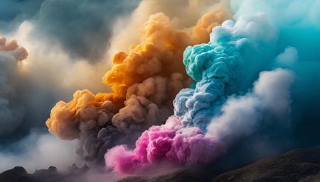 Clouds of colored smoke. An abstract background that creates an enchanting and mysterious atmosphere, drawing you into a cloudy world of colored dreams. AI generated.