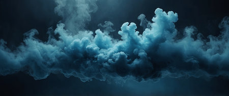 Dramatic blue and white clouds of fog on dark background.