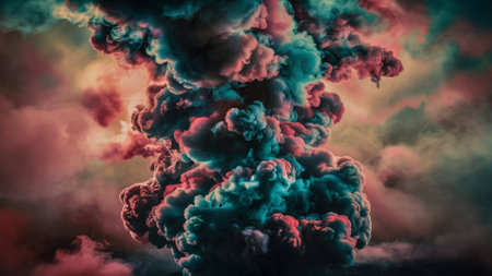Clouds of colored smoke. An abstract background that creates an enchanting and mysterious atmosphere, drawing you into a cloudy world of colored dreams. AI generated.